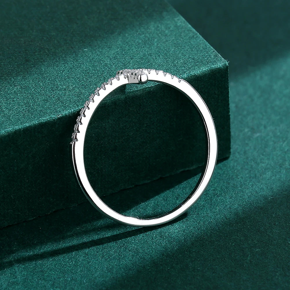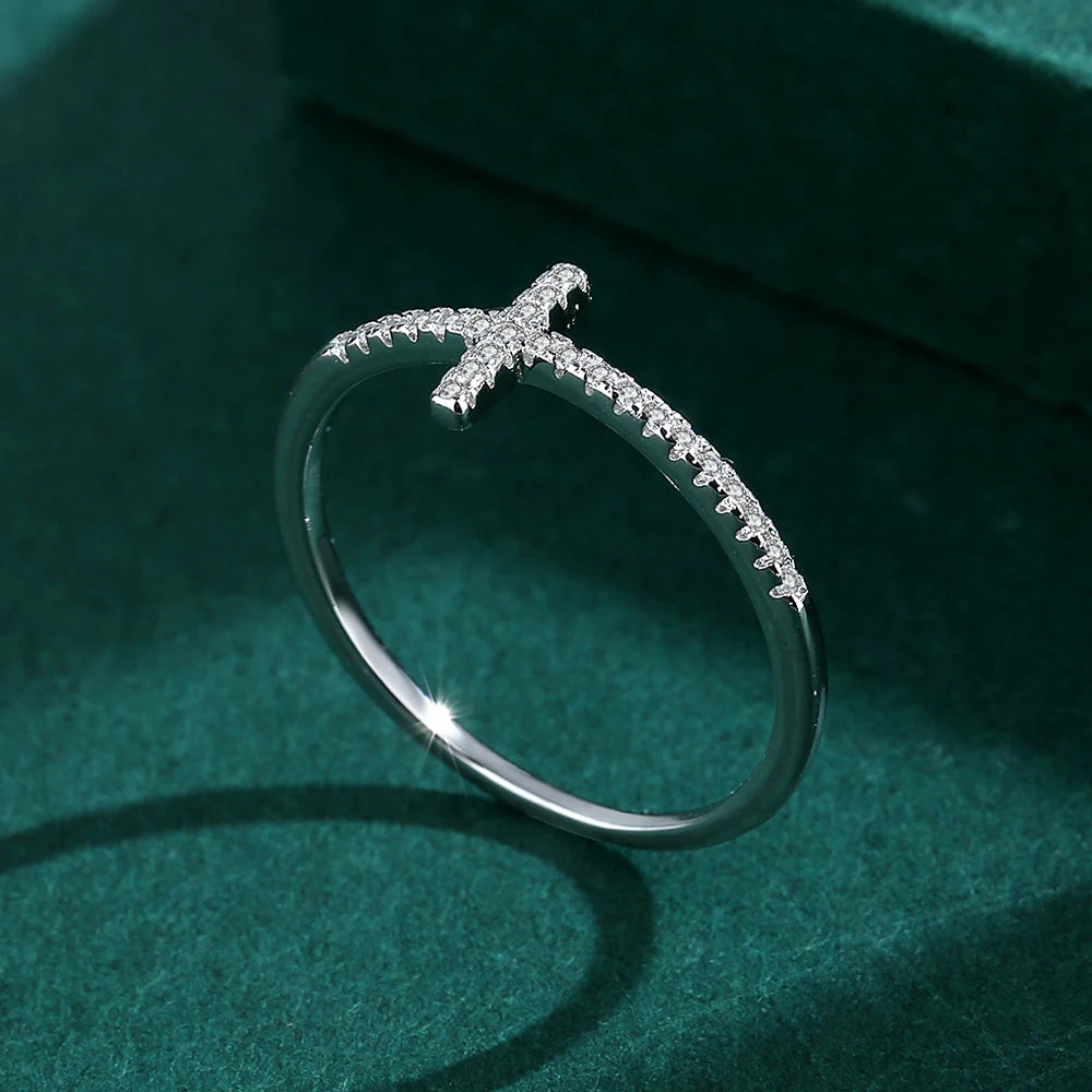 Une véritable bague en argent S925 avec une croix éternité incrustée de petits diamants zircons. Un bijou élégant et intemporel.
