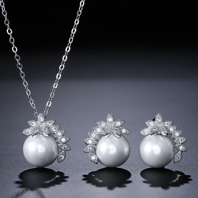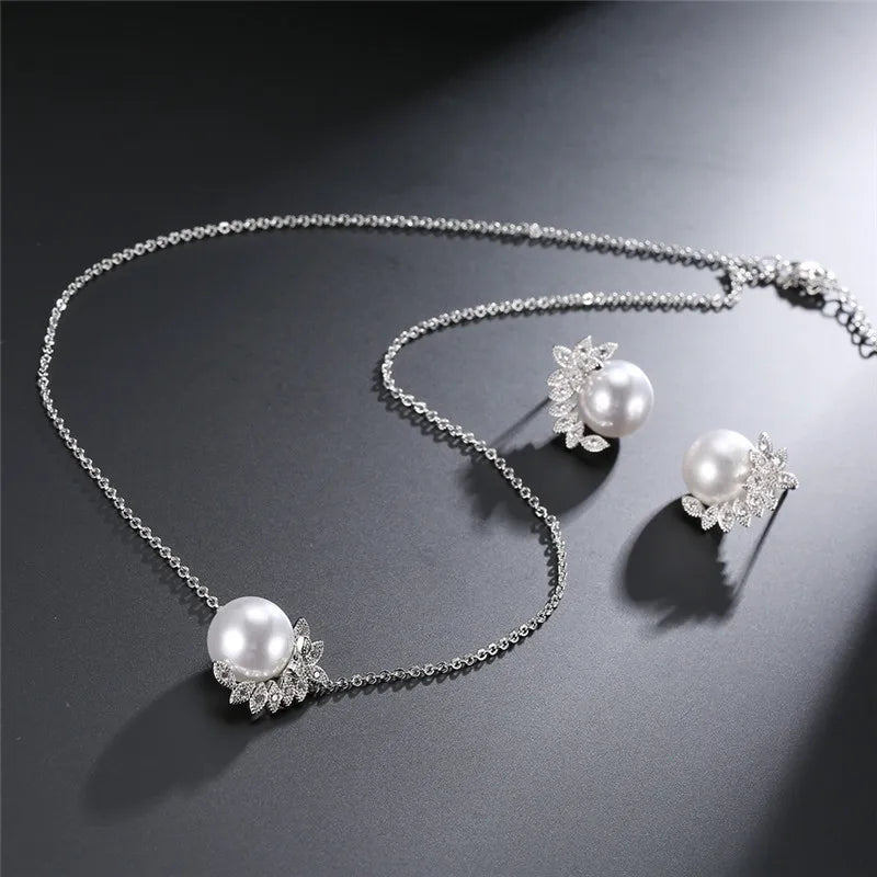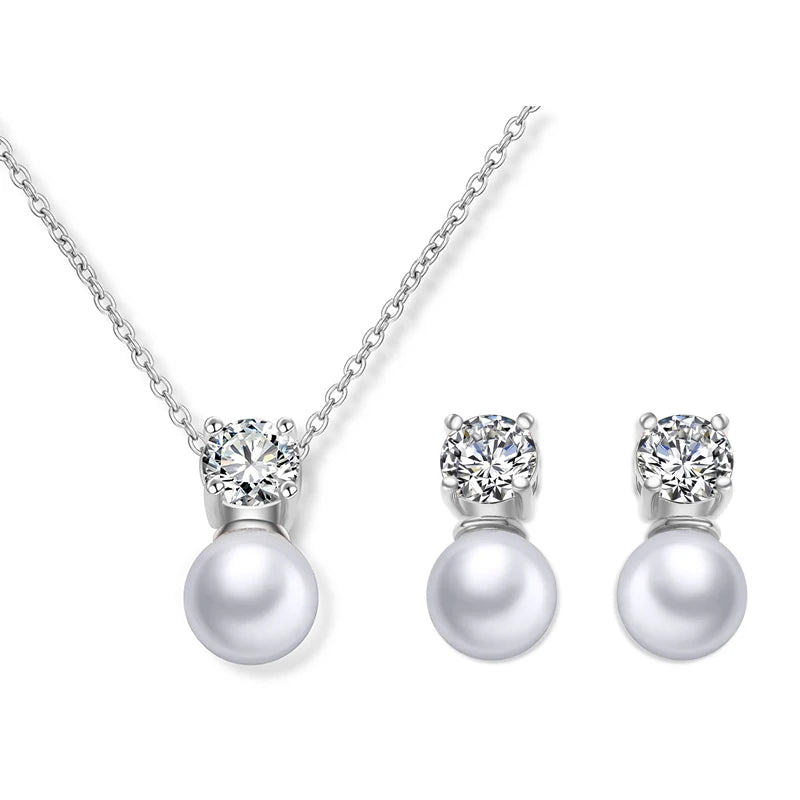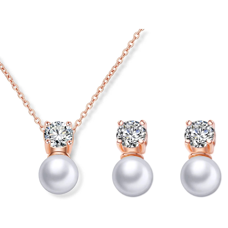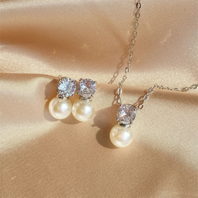 Ensemble de Bijoux Tendance en Perles Imitation et Zircon Cubique