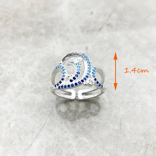 Anneau Vague avec Pierres Bleues - Nouveauté - Fine Joaillerie - Argent Sterling 925 Pur - Tendance - Cadeau pour Femmes