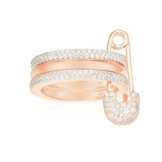 Bague Double Anneau avec Pendentif Sécurité – Zircons Étincelants, Multi Couleurs