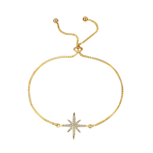 Bracelet Réglable Étoile - Zircon Cubique Plaqué Or avec Fermoir Coulissant