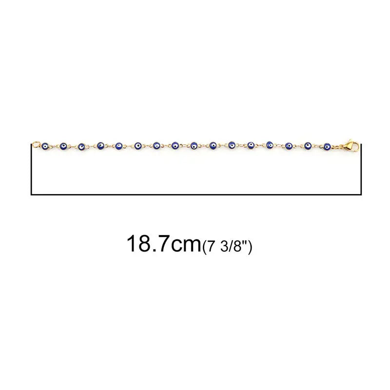 Ajoutez une touche de chance et de style à votre look avec notre bracelet œil de protection en acier inoxydable. Disponible en bleu, rouge, noir et bleu ciel, cet élégant bracelet est orné de perles d'émail aux couleurs vives. Avec une longueur de 18.7 cm, il est parfaitement ajusté pour la plupart des poignets féminins. Doté d'un fermoir homard pour une fermeture sécurisée, ce bracelet est non seulement un accessoire tendance, mais aussi un symbole de protection et de bonne fortune. Parfait comme cadeau pour un être cher lors d'un anniversaire, d'un mariage ou d'une occasion spéciale.