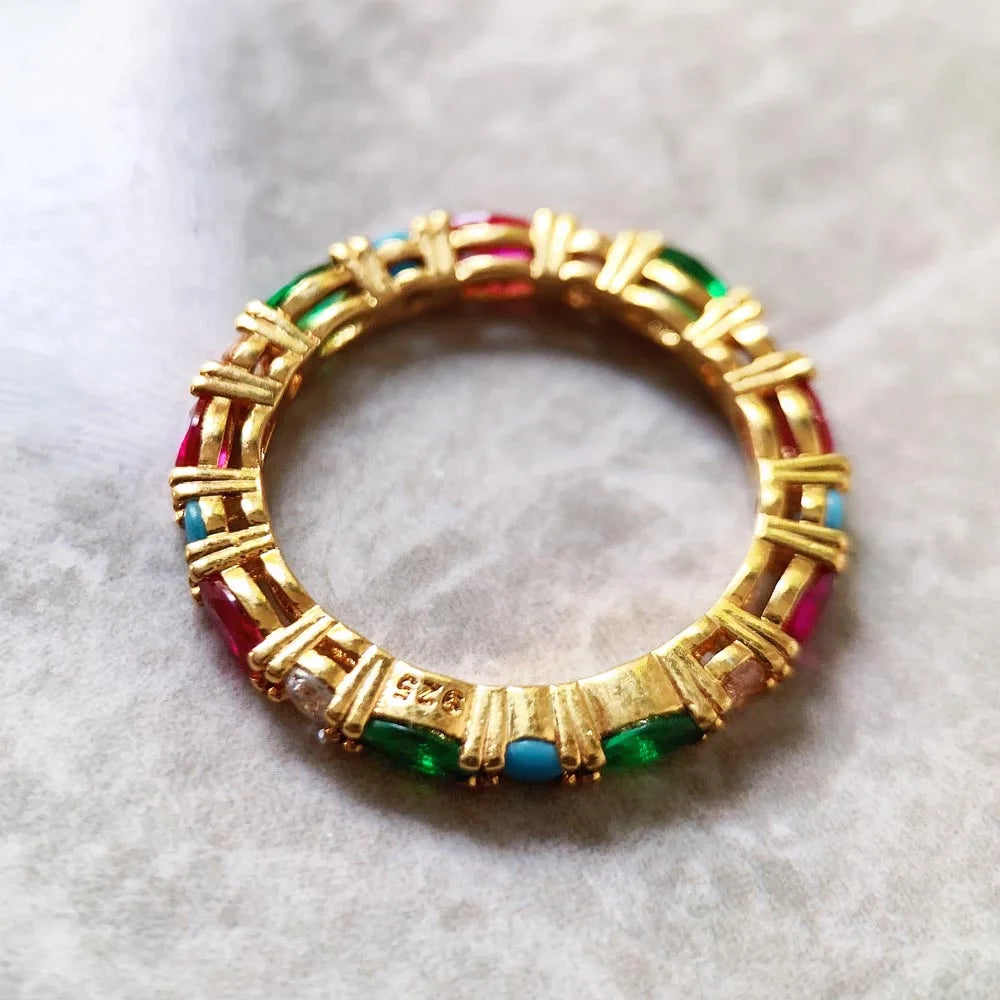 Bague en Or avec Pierres Colorées - Argent Sterling 925, Style Européen Glamour