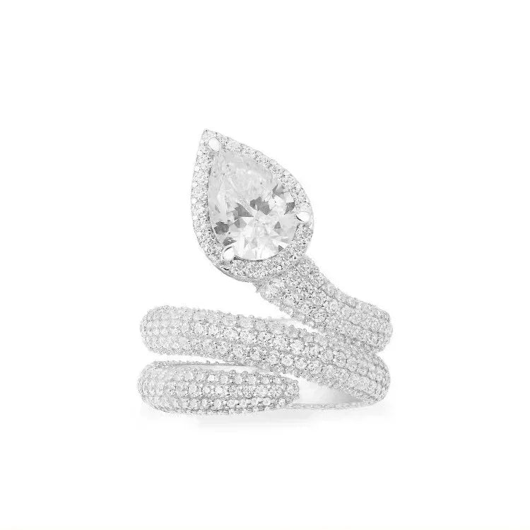 Bague Spirale Goutte Sertie de Zircons – Élégance Brillante
