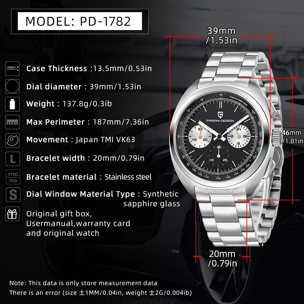 Découvrez la montre chronographe PAGANI DESIGN 2024, une combinaison parfaite d'élégance et de fonctionnalité. Dotée d'un boîtier en acier inoxydable résistant à l'eau jusqu'à 10 bars et d'un mouvement à quartz japonais, cette montre offre un chronométrage précis et fiable. Avec ses multiples fonctions, dont le chronographe, la résistance aux chocs, la date automatique et le calendrier complet, elle s'adapte à tous les styles de vie. Disponible avec un bracelet en cuir souple ou en acier inoxydable résistant à l'usure, cette montre est parfaite pour toutes les occasions. Optez pour le style et la qualité avec la PAGANI DESIGN 2024.
