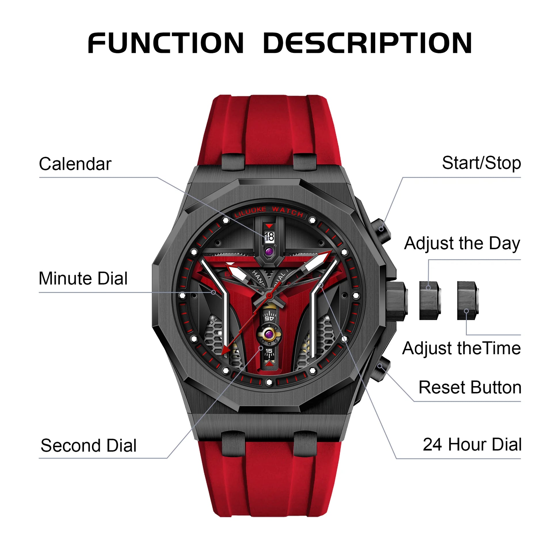 Découvrez la Mando Vortex, la montre ultime pour les fans de Star Wars. Conçue en alliage robuste et équipée d'un bracelet en silicone, cette montre de 42 mm allie style sportif et inspiration cinématographique. Avec une résistance à l'eau de 3 bars, elle est parfaite pour les activités quotidiennes, qu'il s'agisse de se laver les mains ou de sortir sous la pluie. Son cadran unique présente une structure interne en 3D imitant les roues et disques de frein, ajoutant une touche de caractère. Disponible en plusieurs couleurs (rouge, vert, orange, noir), la Mando Vortex est un cadeau parfait pour les passionnés de films et les amateurs de sports.