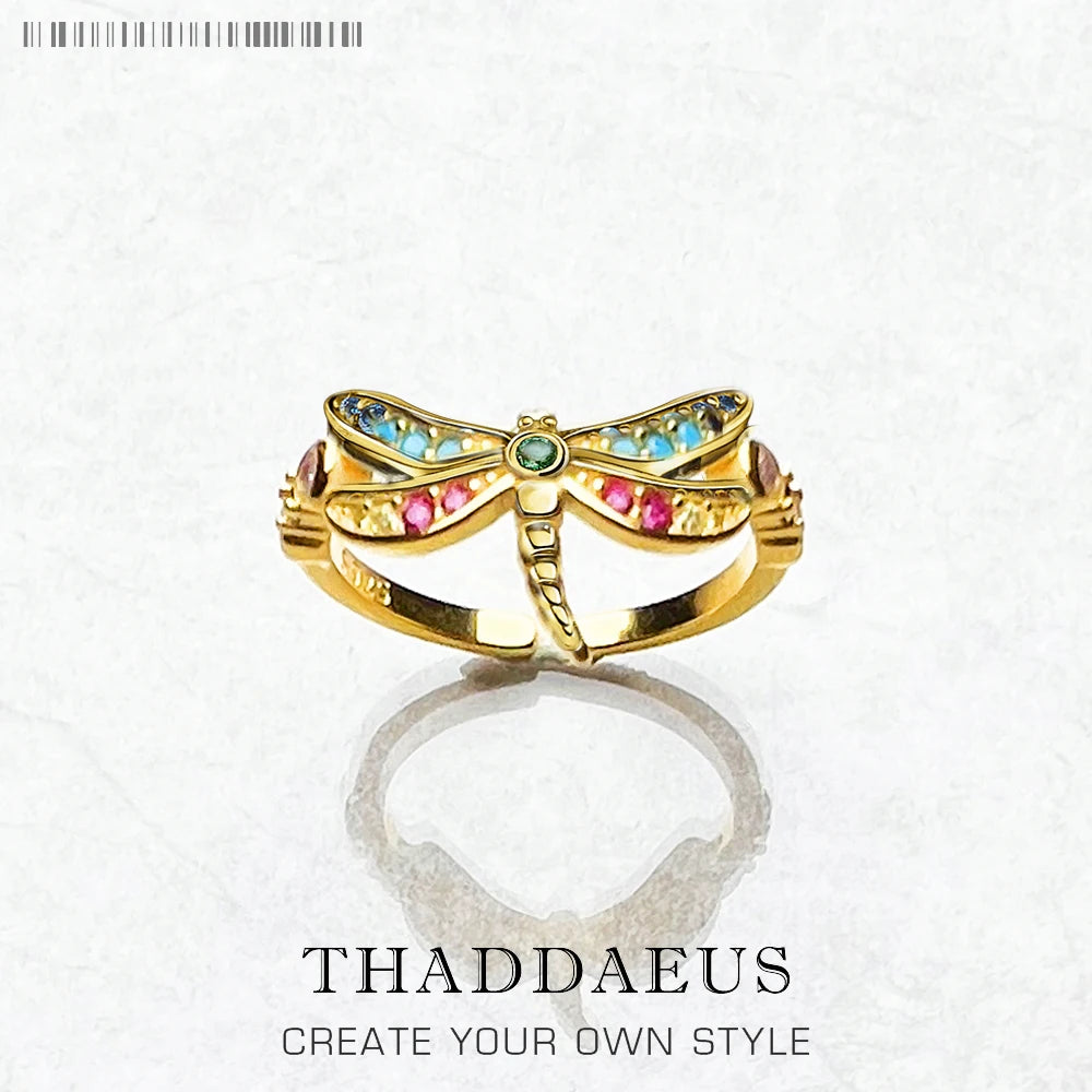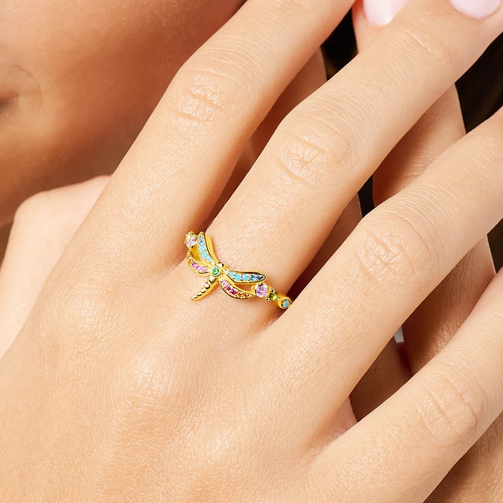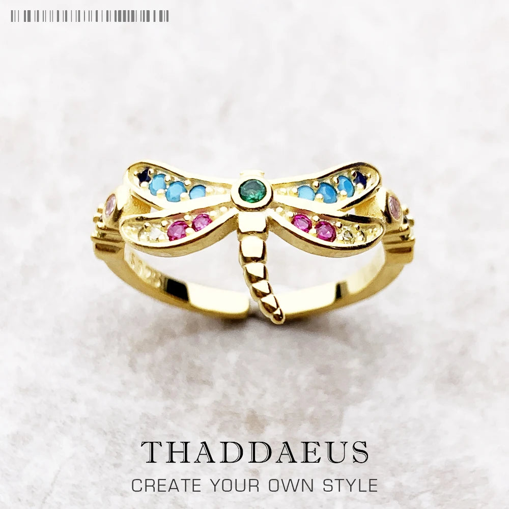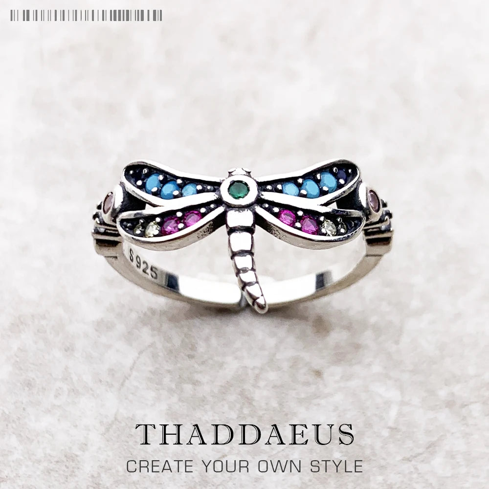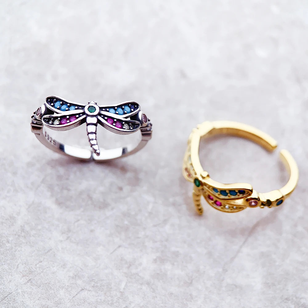 Anneau Libellule avec Pierres Colorées Europe Bohème Bijoux pour Femmes Cadeau Créatif en Argent Sterling 925