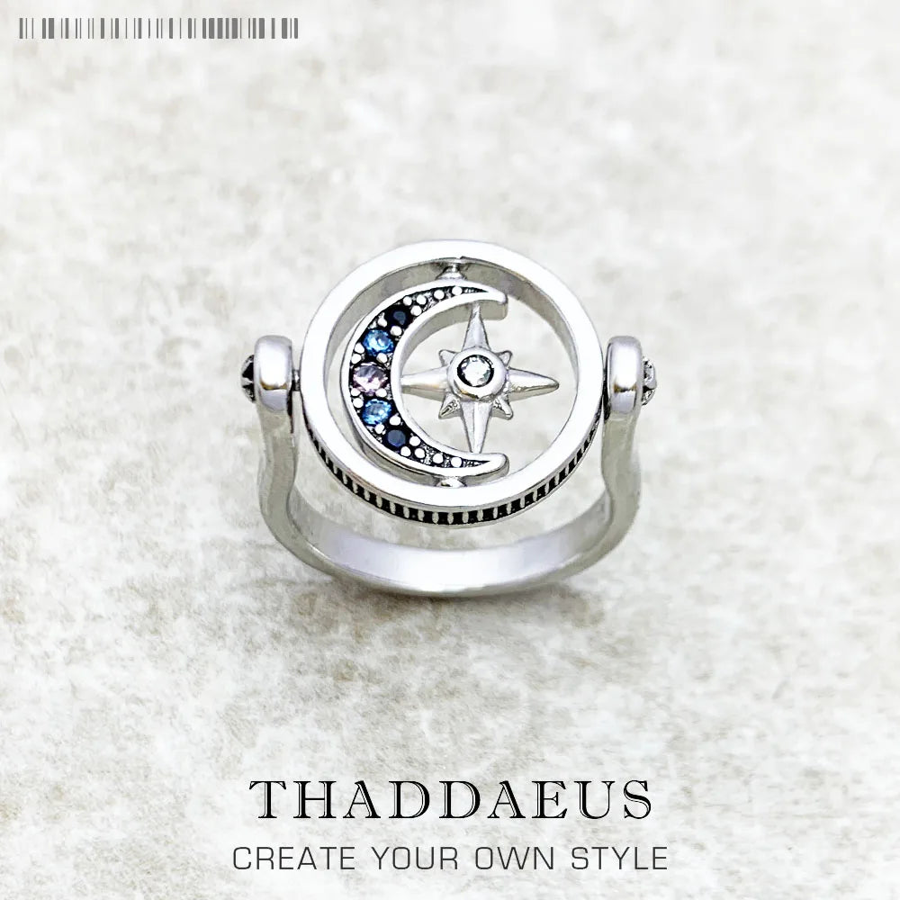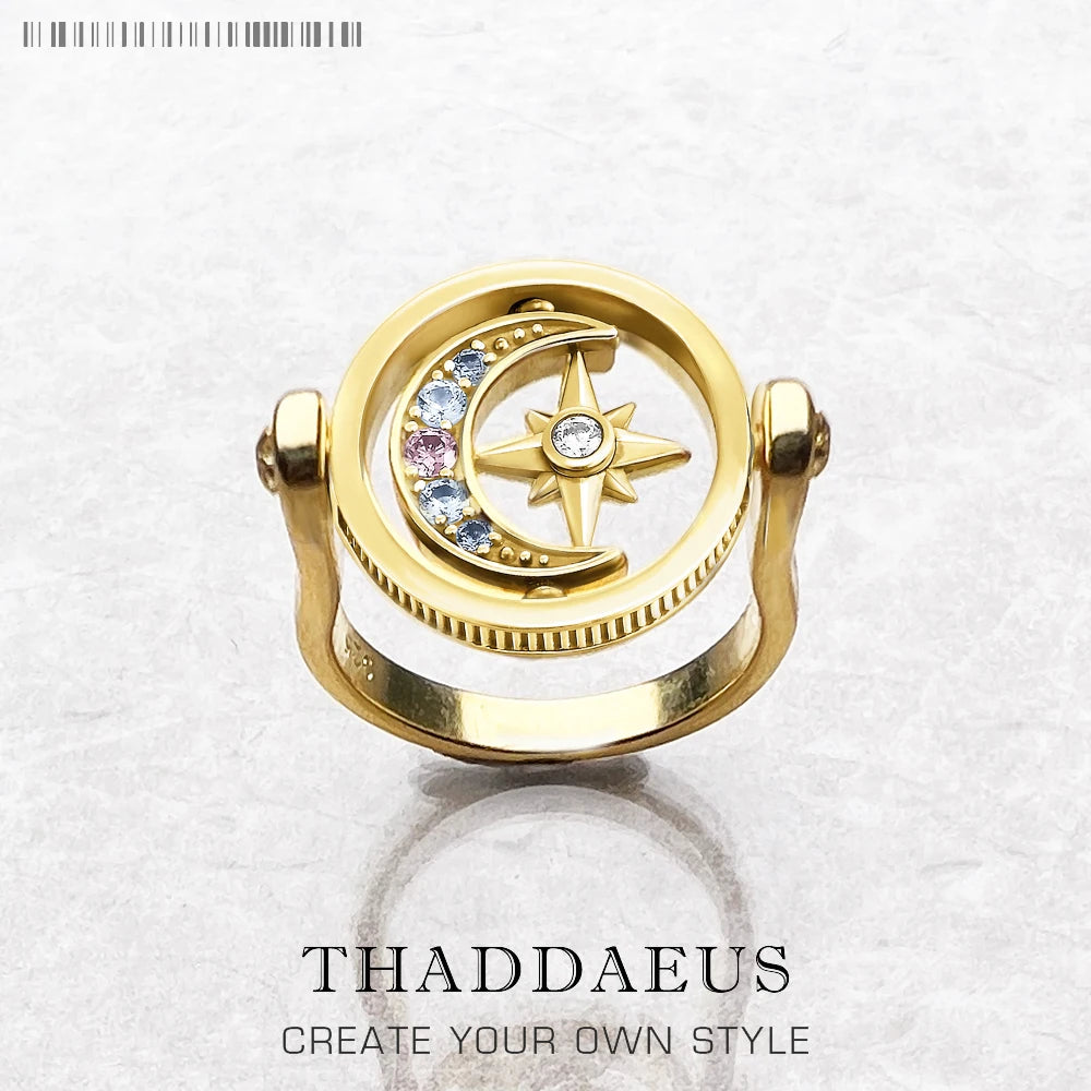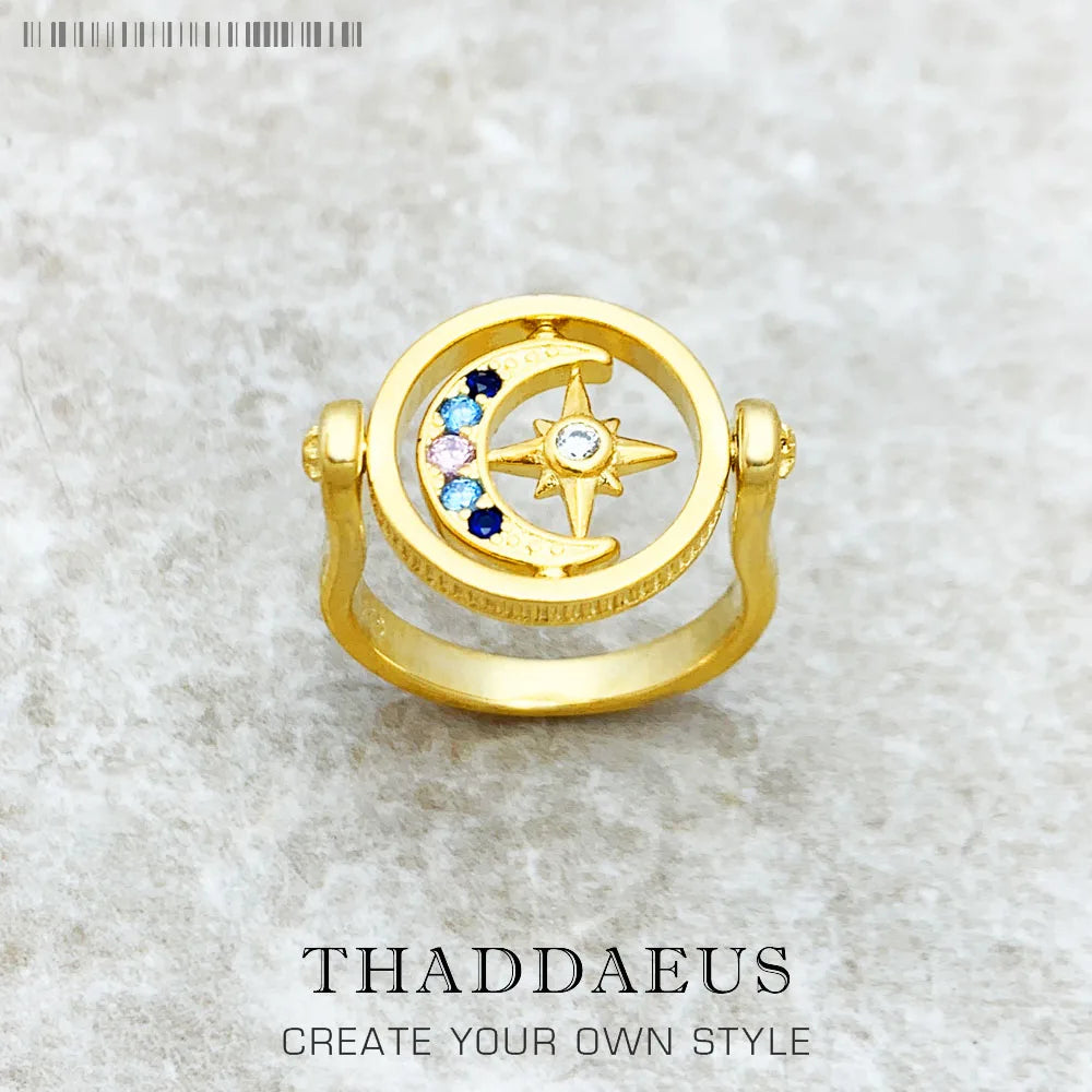 Bague Royauté Étoile & Lune Or, Bijoux Européens pour Femmes Élégantes, Cadeau Bohème 2022 en Argent Sterling 925