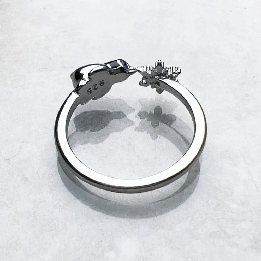 Bague Flocons de Neige et Manchot - Cadeau d'Hiver Mignon pour Femmes en Argent Sterling 925