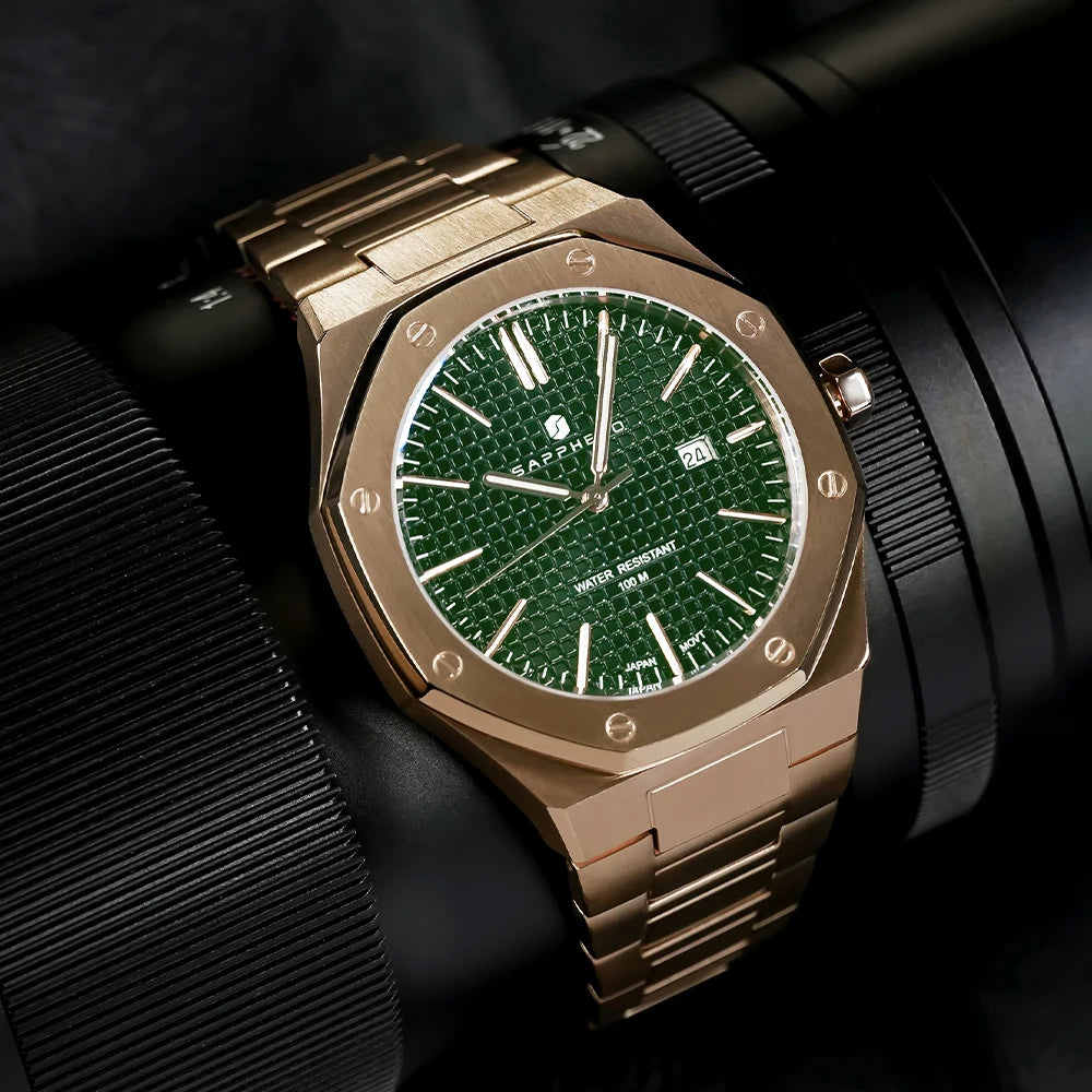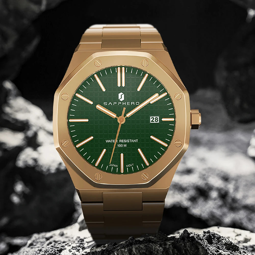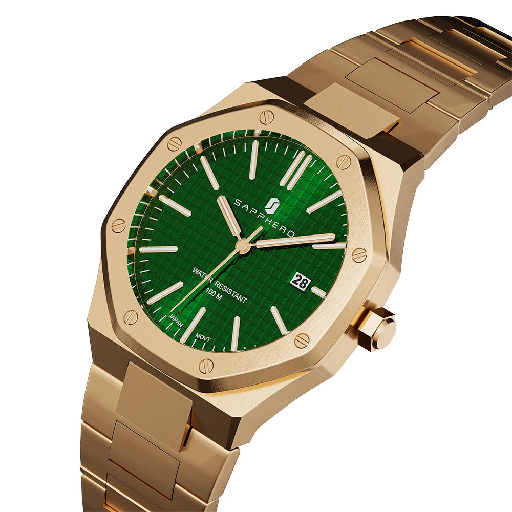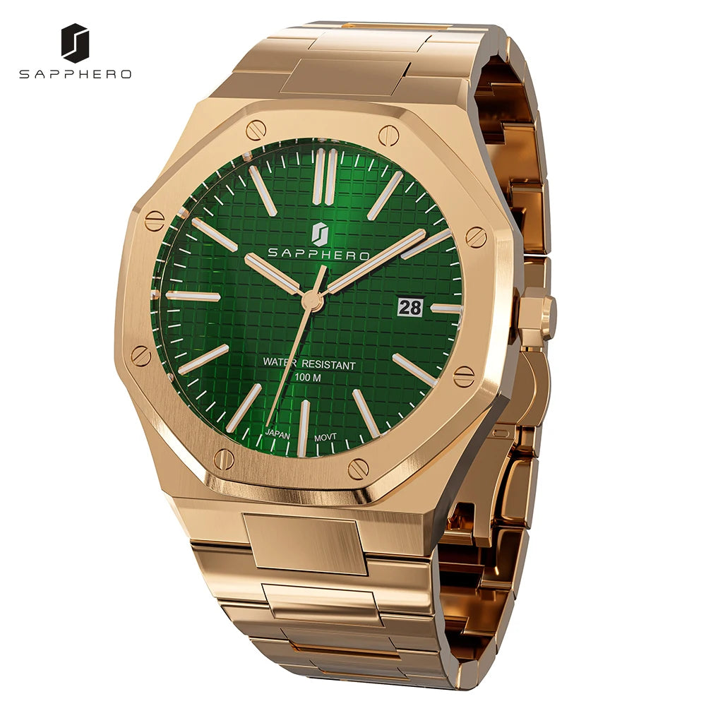 La montre SAPPHERO incarne l'essence du style d'affaires. Dotée d'un boîtier et d'un bracelet en acier inoxydable, cette montre quartz affiche une sophistication intemporelle. Le fermoir à bouton-poussoir dissimulé et la résistance à l'eau jusqu'à 10 bars ajoutent une fonctionnalité moderne. Avec un cadran de 42 mm, des aiguilles lumineuses, et une fonction de date automatique, cette montre SO-2110Q combine élégance et praticité. Fabriquée en Chine continentale, elle est présentée dans un étui en papier, prête à sublimer chaque instant professionnel.