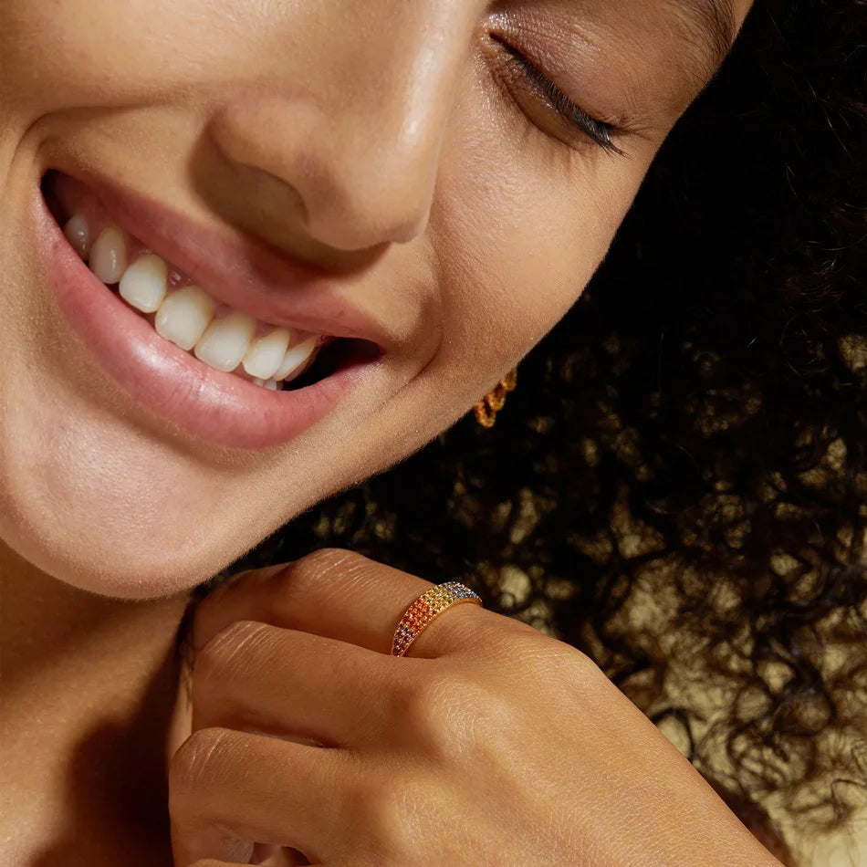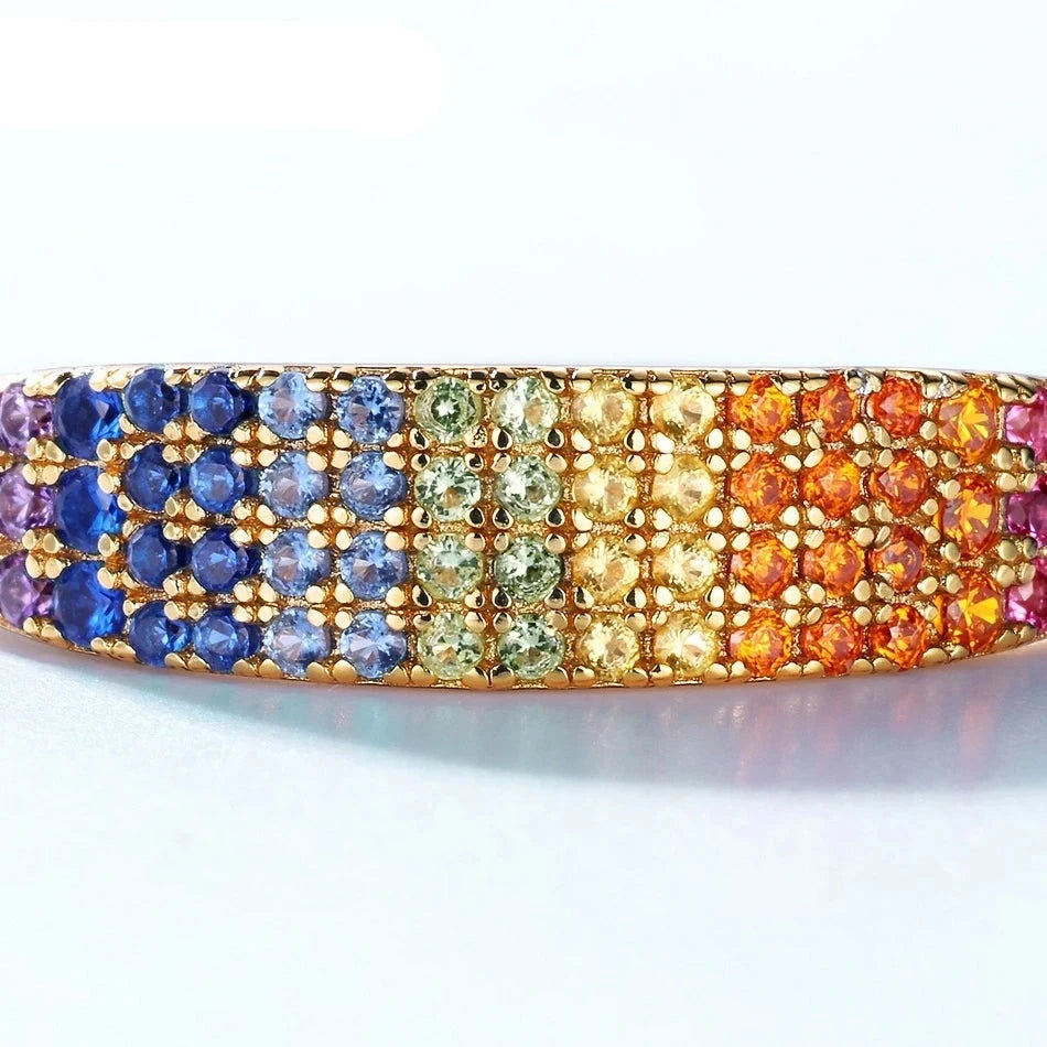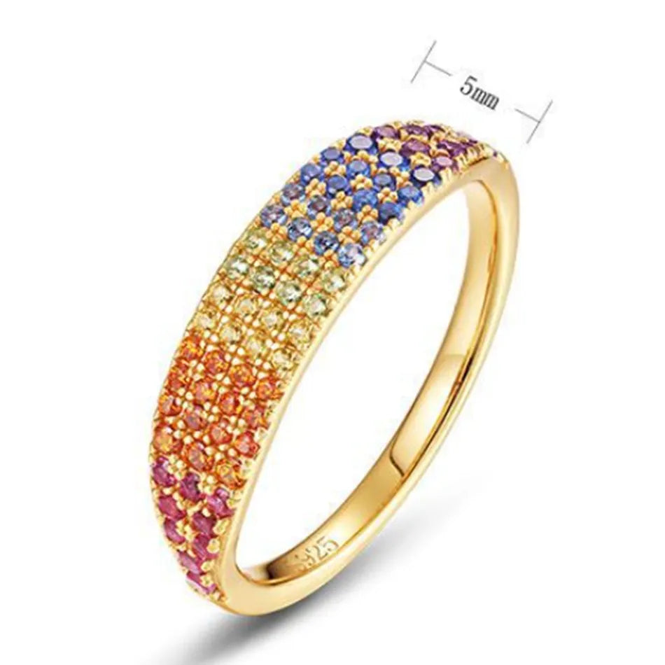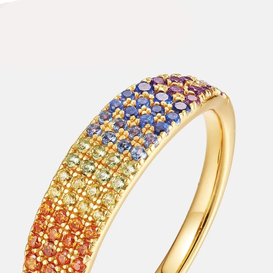Bagues Zircons Colorés en Dégradé Arc-en-Ciel, Plaqué Or