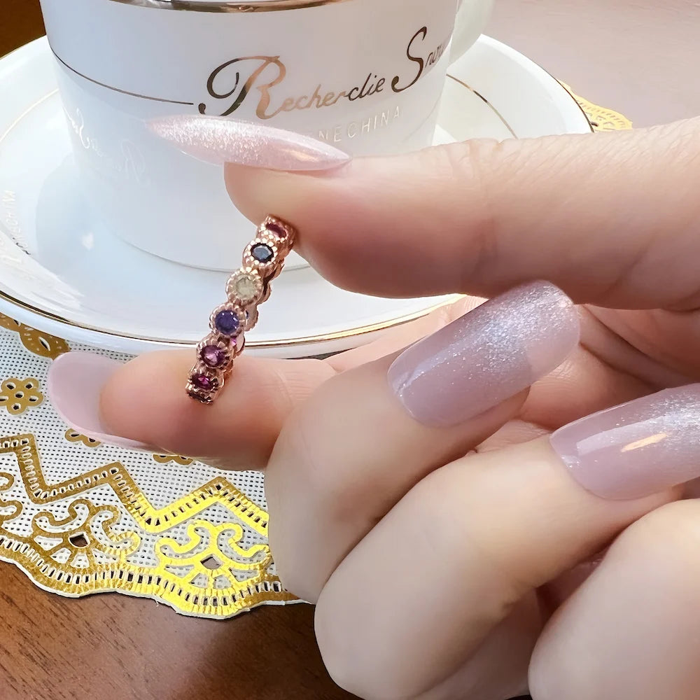 Bague Royauté Pierres Colorées, Style Européen Vintage Victorien en Argent Sterling 925